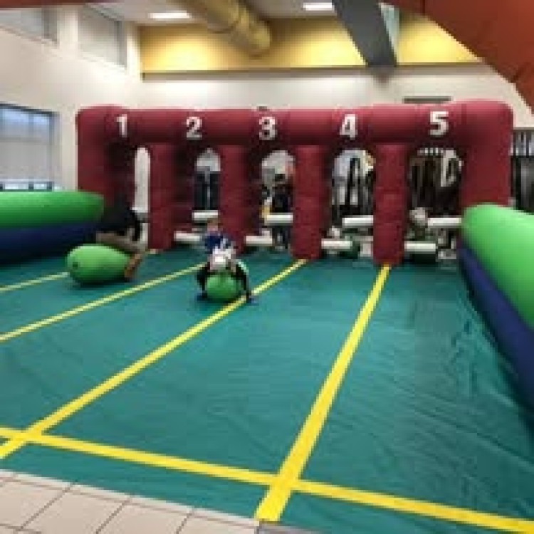 - OCCUPANCY: A maximum of 5-6 kids of equal size at one time for bounce houses, and 1 person at a time for slides is what most inflatable manufacturers recommend.